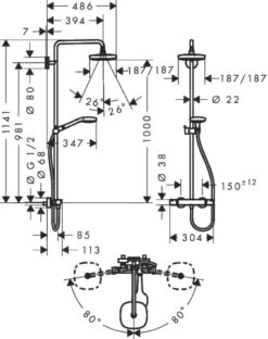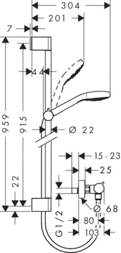 Hansgrohe Croma 220 – Duschsäule Reno 220 Mm, Duscharm 400 Mm, 1 Strahl, Verchromt 27224000
