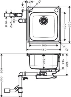 Hansgrohe Abwäschen – Granit-Einbauspülbecken S4111-F540 Mit Abtropffläche, Edelstahl 43342800