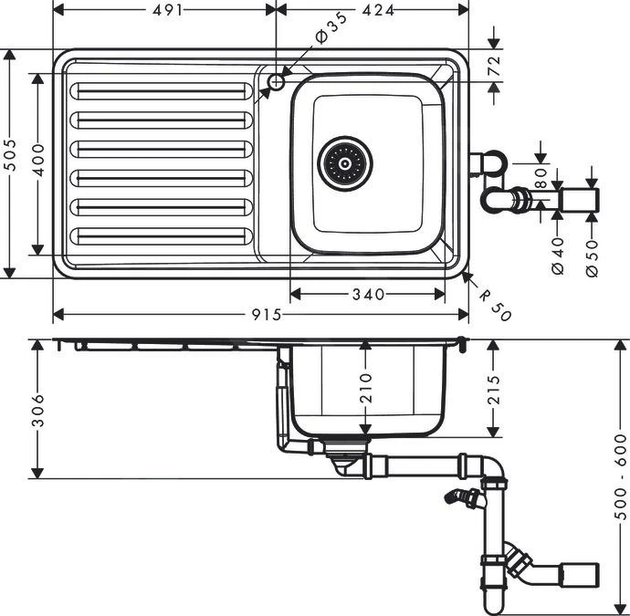 Hansgrohe Abwäschen – Granit-Einbauspülbecken S4111-F340 Mit Abtropffläche, Edelstahl 43340800