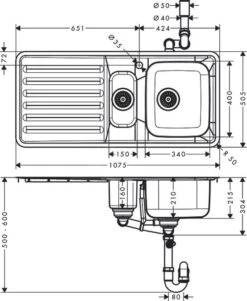 Hansgrohe Abwäschen – Granit-Einbauspülbecken S4111-F540 Mit Abtropffläche, Edelstahl 43342800