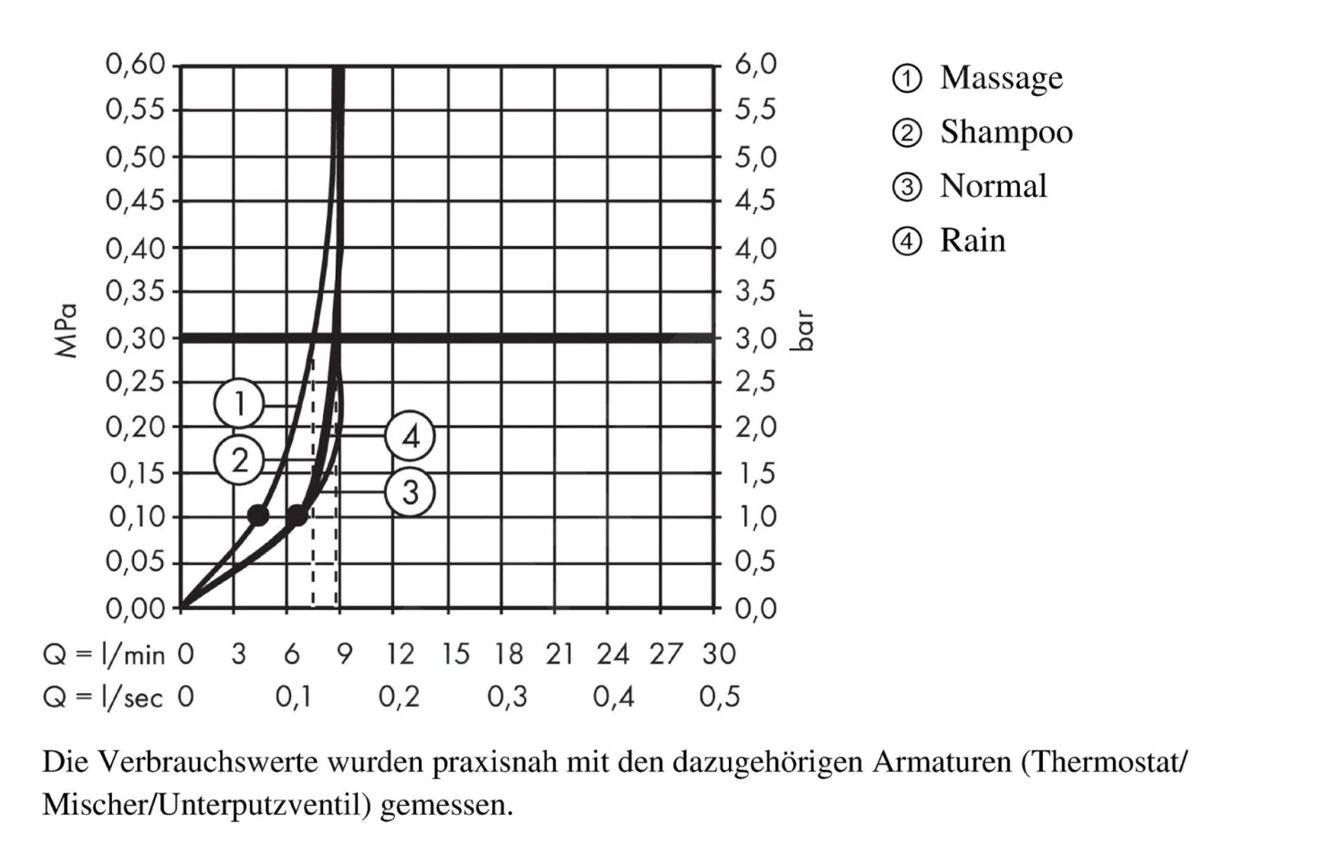- maximale Durchflussmenge bei 3 bar: 9 l/min