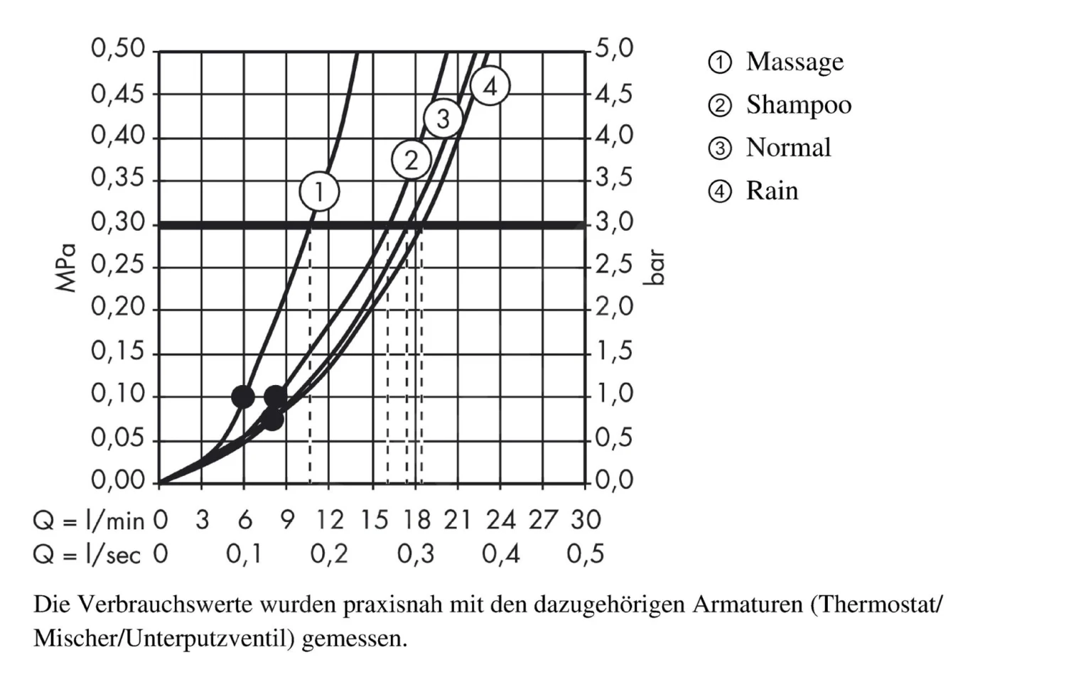 - maximale Durchflussmenge bei 3 bar: 18 l/min