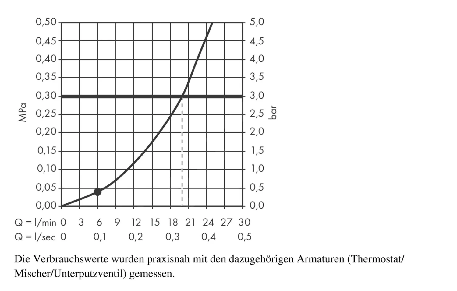 - Durchflussmenge Rain Strahl (bei 3 bar): 20 l/min
