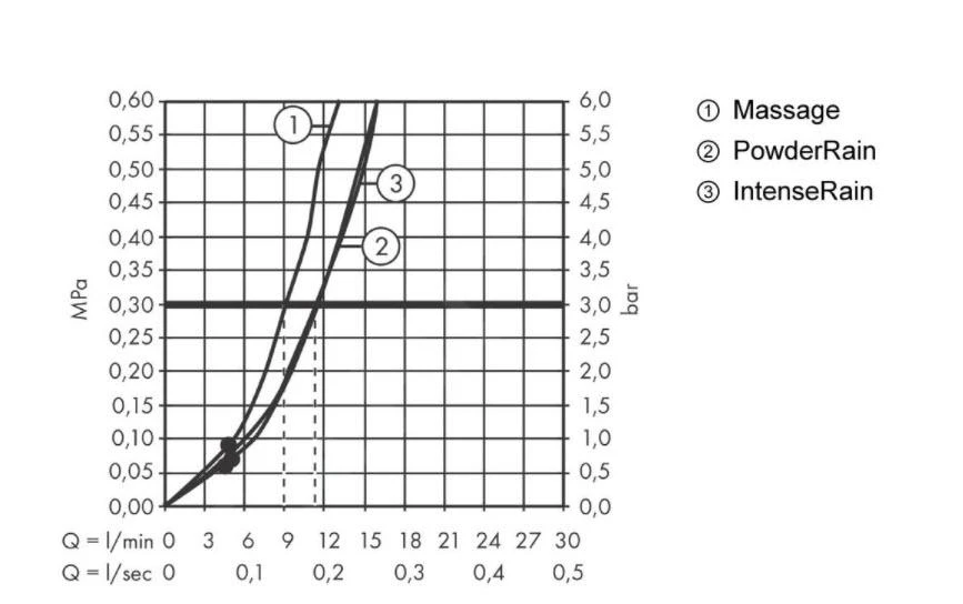 - Duschstrahl: PowderRain, IntenseRain, Massagestrahl