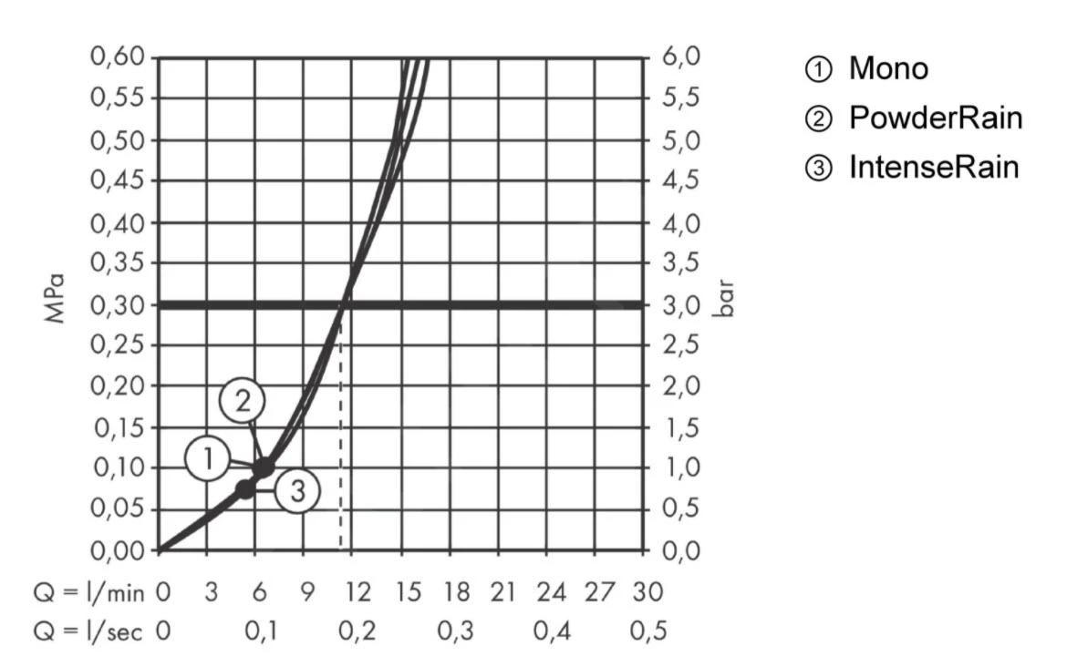- Duschstrahl: PowderRain, IntenseRain, MonoRain