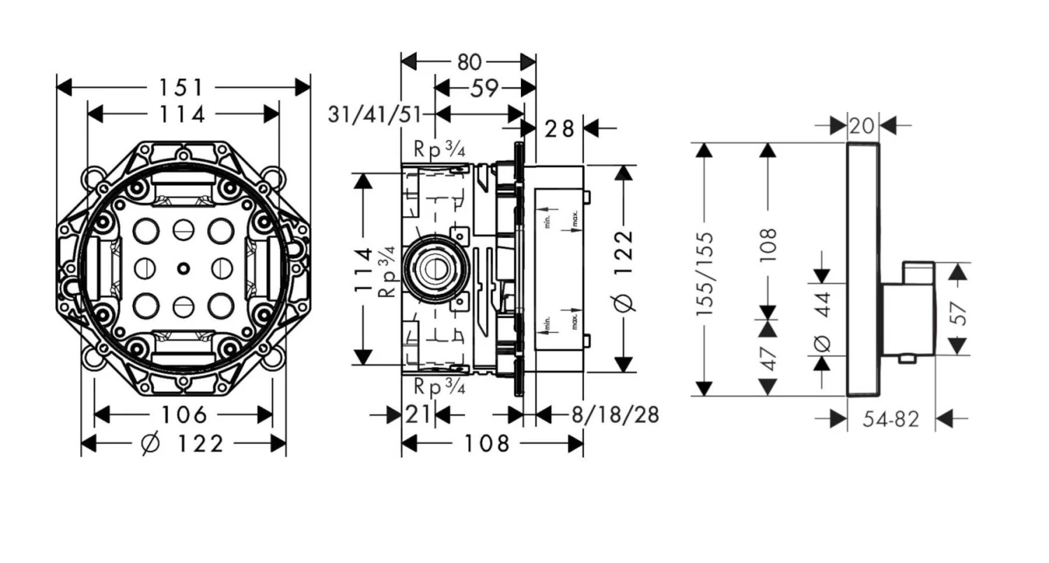 | Typ | Thermostatarmatur (Unterputz) – Wandmontage |