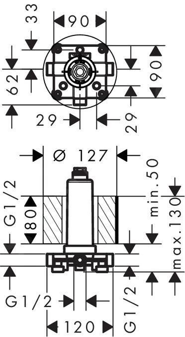 Sie möchten eine Rainmarker Select 460 Kopfbrause an der Decke Ihres Duschbereichs installieren? Dann entscheiden Sie sich für den dazugehörigen Grundkörper für einen fachgerechten Einau. Er eignet sich für die Unterputz-Montage.