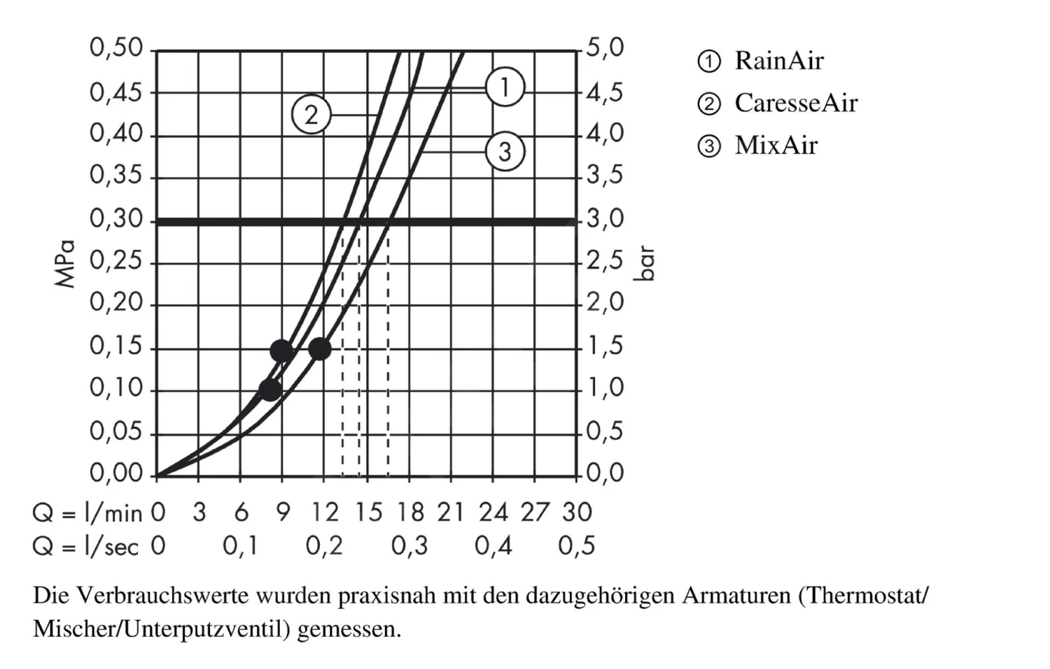 - maximale Durchflussmenge bei 3 bar: 16 l/min