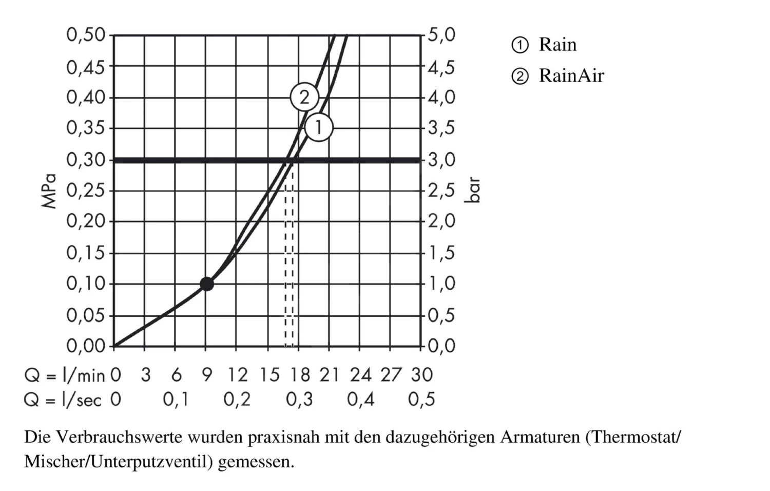- Durchflussmenge RainAir Strahl (bei 3 bar): 17 l/min