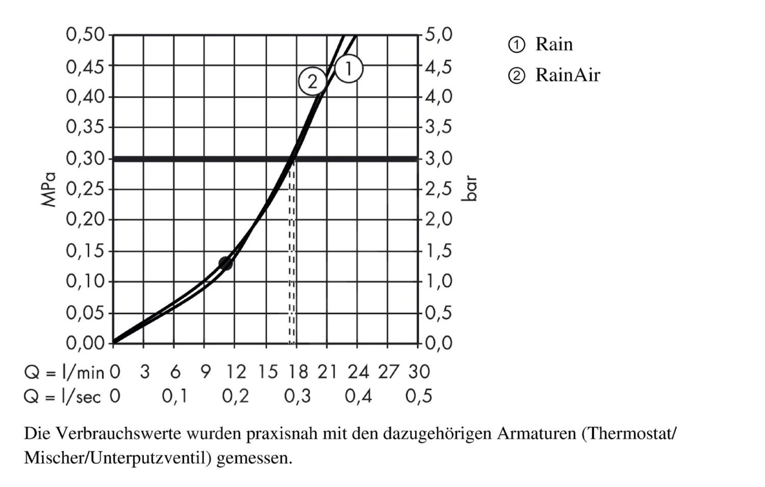- Durchflussmenge RainAir Strahl (bei 3 bar): 17 l/min