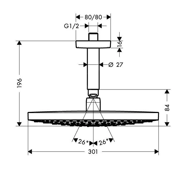 Hansgrohe Raindance Select S – Kopfbrause 300, Ausladung 100 Mm, 2 Strahlen, Verchromt 27337000