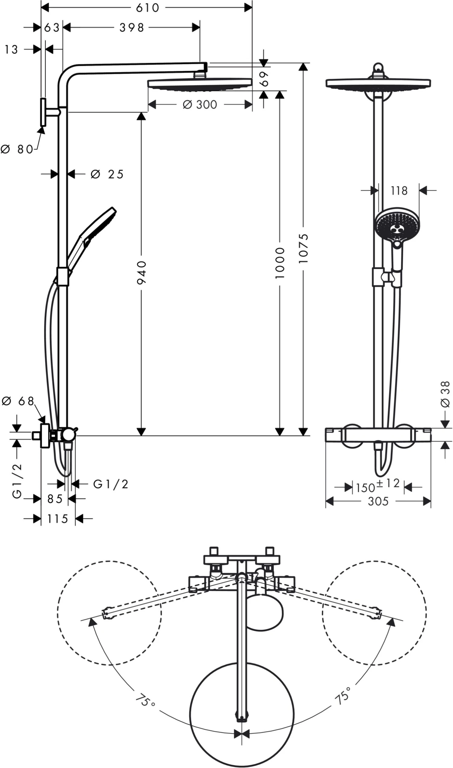 bestehend aus: Isiflex Brauseschlauch 1,60 m (28276000), Raindance Select S 120 3jet Handbrause (26530000)