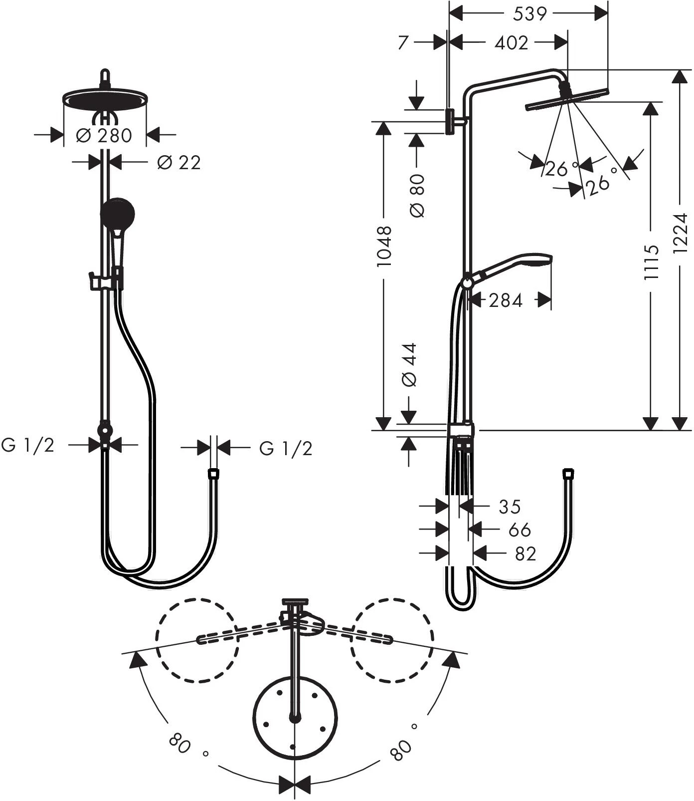 hansgrohe Reno Croma Select 280 Air Showerpipe
