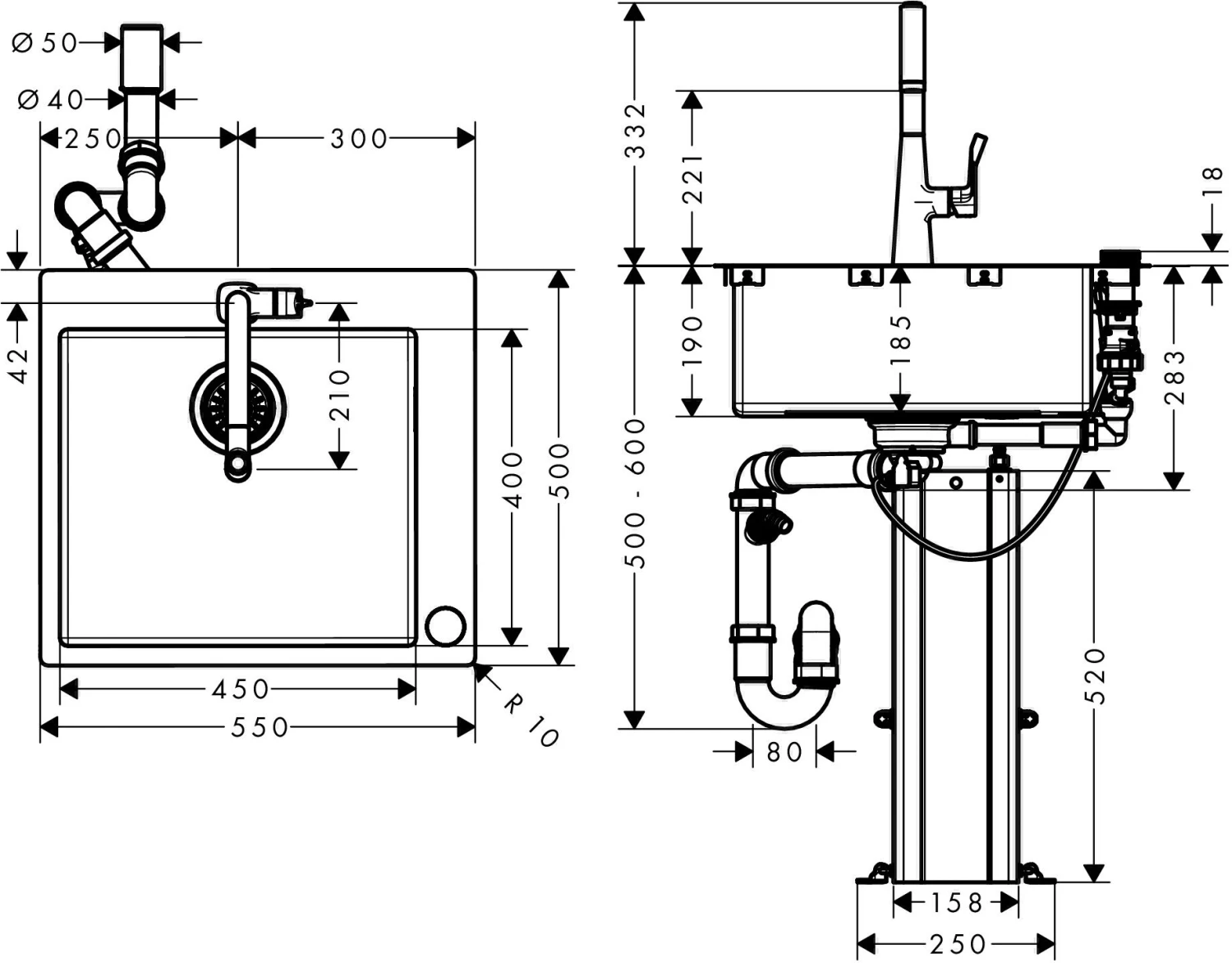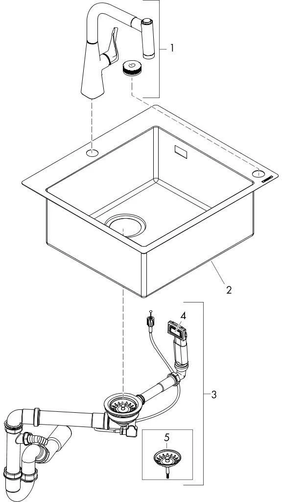 Einbauspüle, Küchenmischer, sBox, automatische Ab- und Überlaufgarnitur