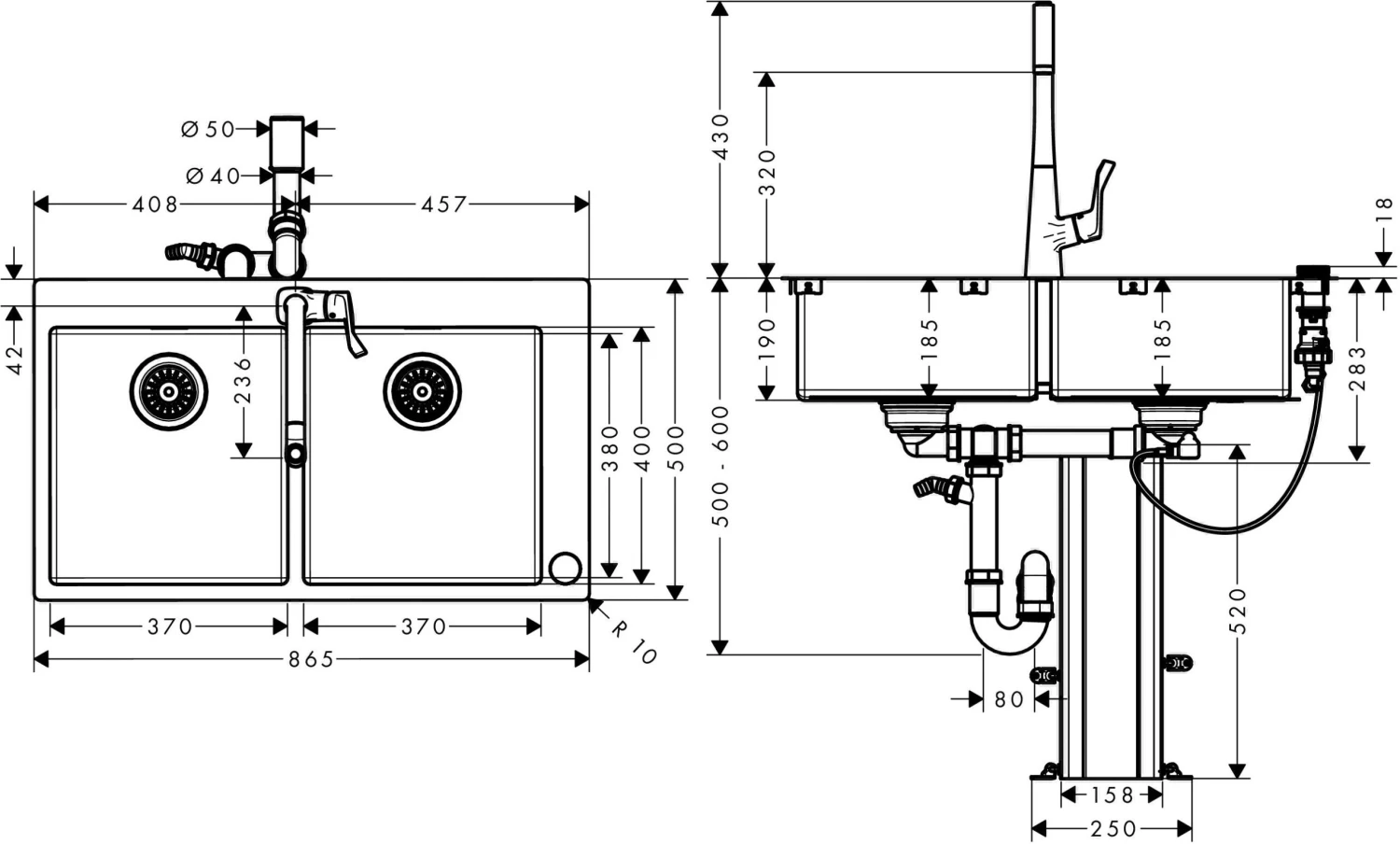 - Eckradius: 10 mm