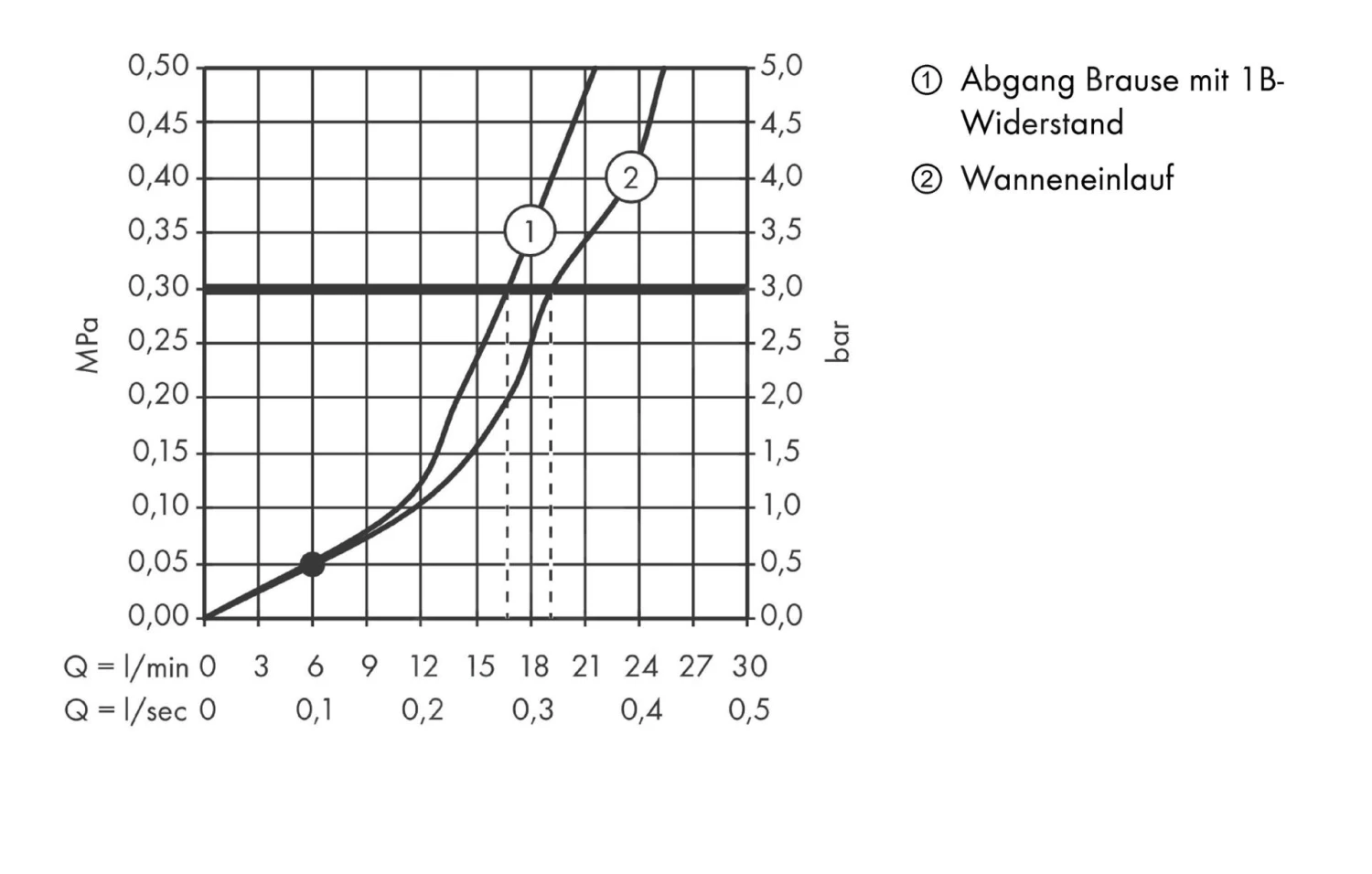 - Durchfluss für Wanneneinlauf bei 3 bar: 19 l/min