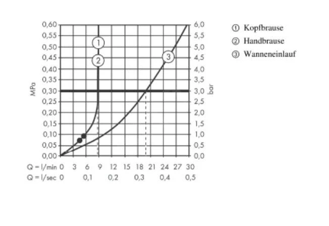 - EcoSmart, maximaler Durchfluss bei 3 bar: 8,7 l/Min