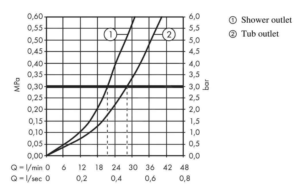 - Durchfluss oberer Ausgang: 21 l/Min (Druck 3 bar)