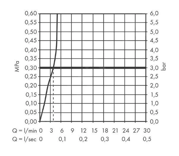 - max. Durchfluss: 4 l/Min (Druck 3 bar)