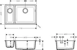 Hansgrohe Unterbauspüle 43433290 710 X 450 Mm, 1 Haupt- Und Zusatzbecken, Steingrau