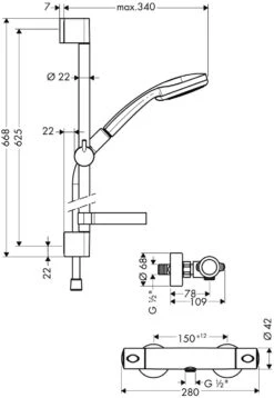 Hansgrohe Croma Select S Showerpipe 26891340 Mit Thermostat Und Handbrause, Brushed Black Chrome